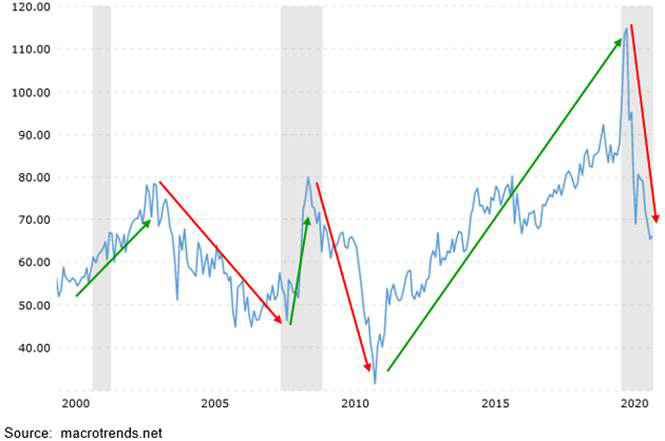 To me it’s very intriguing to note how recessions, which are the grey vertical bars, tended to mark troughs and/or peaks in the ratio. What’s also interesting is that when silver reached its peak in 1980, the gold-silver ratio ultimately bottomed around the same time at a level near 15, which was below the starting point near 20.